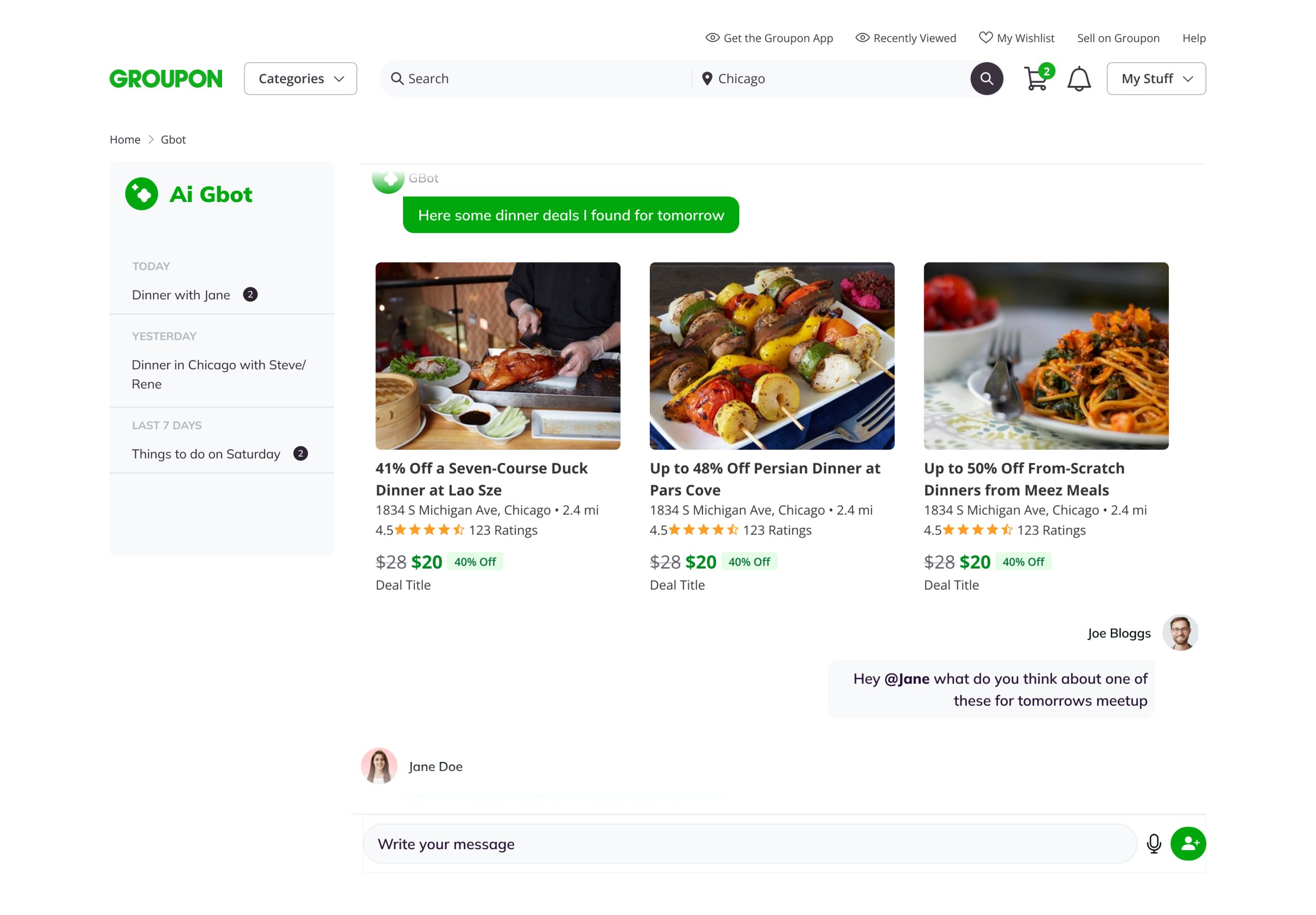 I worked on several projects for Groupon, from launching a new communications channel to working on the brand refresh to AI chatbots.