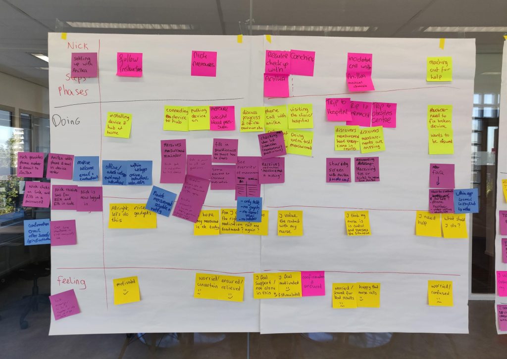 Mapping sessions with older adults using remote monitoring equipment highlighted feelings of isolation and dependency (“Can only depend on others”“No knowledge about my condition or what results mean”). Many voiced a desire for more accessible health information and the ability to take ownership of their wellbeing. These insights led us to create simple dashboards, transparent motivational feedback, and personalized views, helping users feel empowered about their health journey.