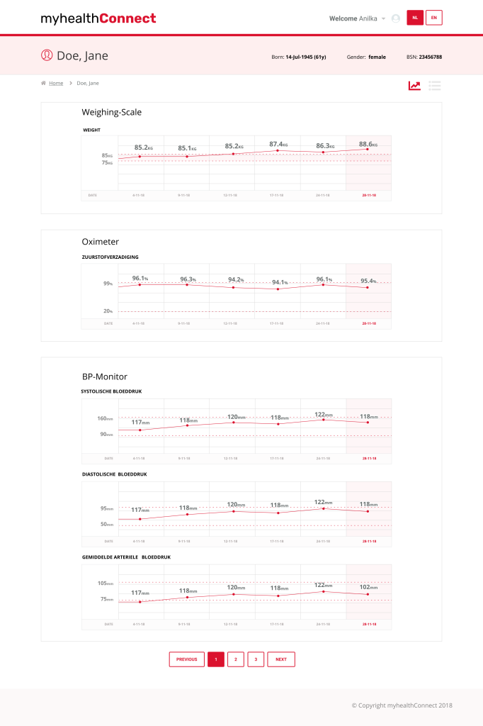 Instead of sifting through scattered reports, doctors could now view trend lines for each patient — visualised over time and colour-coded for quick recognition. The design allowed them to spot concerning changes early, while giving them a calm sense of oversight when everything was stable.